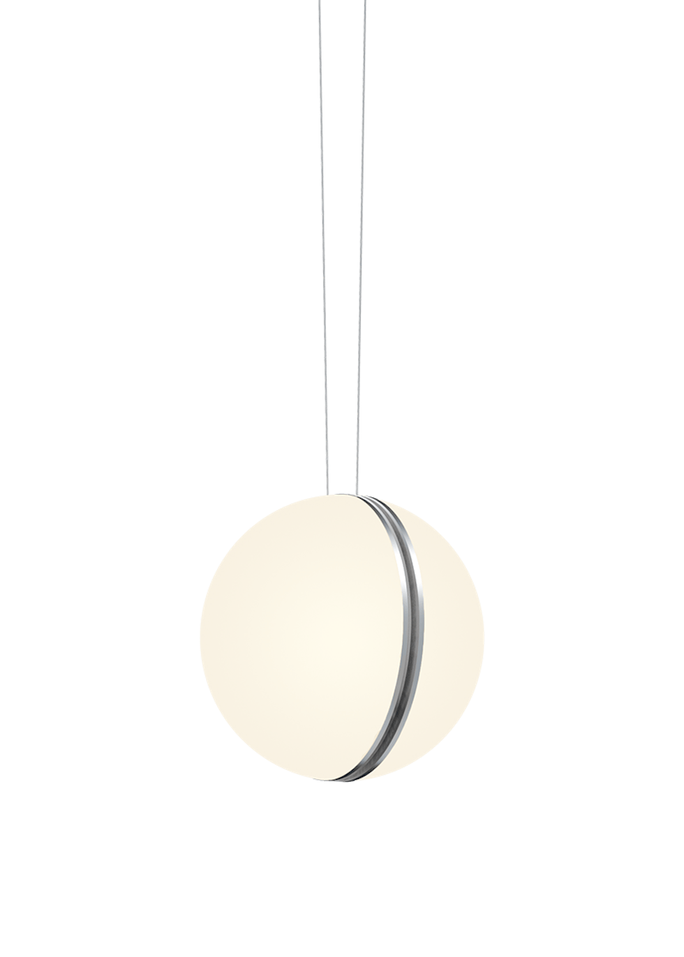 De Nova van Oligo is onderdeel van de ‘Slack Line’. Deze glazen bol is met de hand gemaakt van wit opaal kristal glas met een aluminiumkleurige ring afgewerkt.